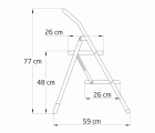 Acabado en color blanco, con protectores en color negro. Medidas - Altura Total: 77 cm. Altura Total Peldaños: 46 cm. Apertura: 57 cm. Medida cerrado: 47 cm ancho, 12 cm fondo, 87 cm alto. Medida abierto: 47 cm ancho, 57 cm fondo, 77 cm alto. Con asa para transportarla y guardarla.