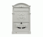 Buzón de aluminio fundido. Ranura superior. Puerta con cerradura. Alta resistencia.