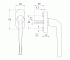 Manilla para ventanas con sistema europeo de cremonas. Con cuadradillo de 7 mm y tetones de 12 mm. Incluye accesorios de fijación.
