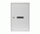 Recogecartas de acero en color blanco con apertura posterior para interiores. En el paquete se incluyen tornillos, tirafondos y una llave en bruto de latón niquelado. Gracias a su fondo de 10 cm, tiene buena capacidad para recoger grupos de hojas y sobres de tamaño medio.