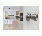 Juego de pomos tipo copa con picaporte de entrada 60/70 mm incluido. Picaporte de canto cuadrado. Función de paso: la manilla se acciona libremente de ambos lados. Para puertas de madera de anchura de 35 a 45 mm.