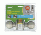 Juego de pomos tipo bola con picaporte de entrada 60/70 mm incluido. Picaporte de canto cuadrado. Función Paso: la manilla se acciona libremente de ambos lados. Para puertas de madera de anchura de 35 a 45 mm.