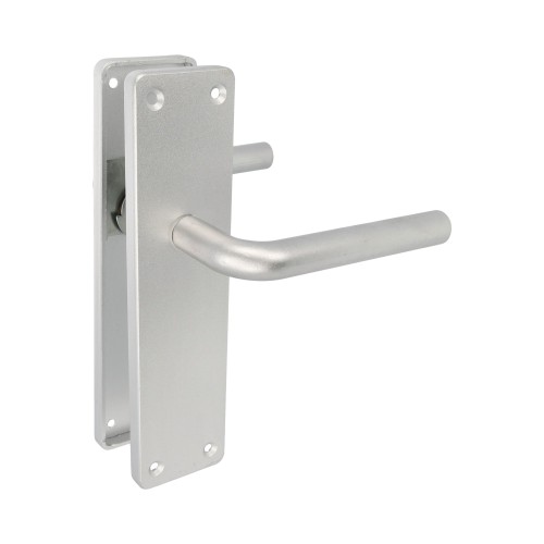 Juego de manillas de aluminio con placa. Incluye accesorios de fijación.