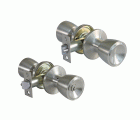 Juego de pomos tipo copa con picaporte de entrada 60/70 mm incluido. Picaporte de canto cuadrado con sistema antitarjeta. Función Hotel, con llave exterior: el sistema se libera solo con la llave, pero por el interior siempre está libre. Llave en bruto modelo 5100. Para puertas de madera de anchura de 35 a 45 mm.