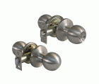 Juego de pomos tipo bola con picaporte de entrada 60/70 mm incluido. Picaporte de canto cuadrado con sistema antitarjeta. Función Hotel, con llave exterior: el sistema se libera solo con la llave, pero por el interior siempre está libre. Llave en bruto modelo 5100. Para puertas de madera de anchura de 35 a 45 mm.