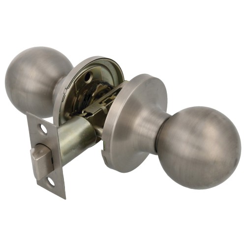 - JUEGO DE POMOS TIPO BOLA: Función de paso, que permite que la manilla se accione libremente desde ambos lados, ya sea para entrar o salir. No es necesario girar o accionar la manilla para abrir la puerta desde el lado interior o exterior.