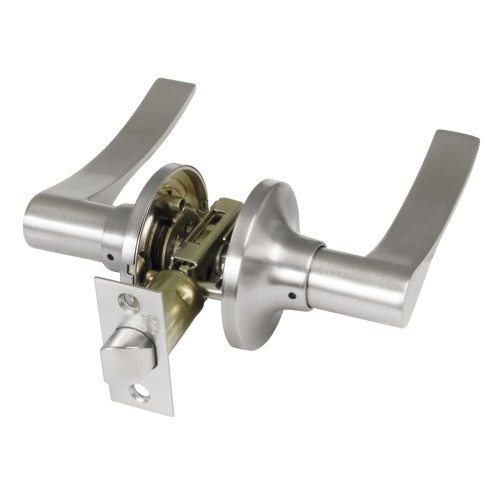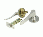 Juego de manillas con picaporte de entrada 60/70 mm incluido. Picaporte de canto cuadrado. Función Paso: la manilla se acciona libremente desde ambos lados. Para puertas de madera de anchura de 35 a 45 mm.