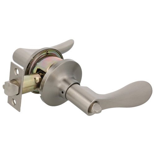 Juego de manillas con picaporte de entrada 60/70 mm incluido. Picaporte de canto cuadrado con sistema antitarjeta. Función Entrada, con llave exterior y condena interior: el sistema queda liberado cuando se desbloquea por medio de la llave o de la condena y se bloquea de la misma manera. Para puertas de madera de anchura de 35 a 45 mm.