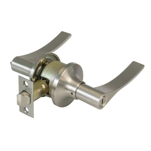 Juego de manillas con picaporte de entrada 60/70 mm incluido. Picaporte de canto cuadrado. Función Privado, con dispositivo de emergencia en el exterior y condena en el interior: con la condena se bloquea el sistema y con el dispositivo de emergencia exterior se libera. Para puertas de madera de anchura de 35 a 45 mm.