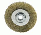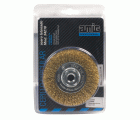 Cepillo circular de alambre de acero latonado con casquillo roscado de M14. Eliminación de óxidos, pinturas, cascarillas y limpieza de piezas. Solo para uso en máquinas portátiles y miniamoladoras.