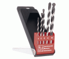 Estuche de plástico con 5 brocas para pared. Serie corta. Punta de carburo de tungsteno. Trabajos de rotación y percusión en ladrillo y cemento.