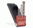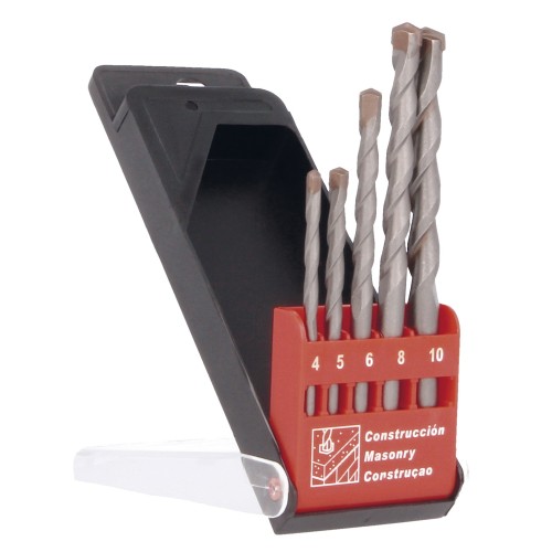 Estuche de plástico de 5 brocas para pared de calidad profesional. Serie corta. Punta de carburo de tungsteno. Trabajos de rotación y percusión en ladrillo, cemento, hormigón, mármol y gres.