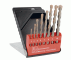 Estuche de plástico de 8 brocas para pared de calidad profesional. Serie corta. Punta de carburo de tungsteno. Trabajos de rotación y percusión en ladrillo, cemento, hormigón, mármol y gres.