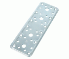 Placa plana perforada de acero. Fijación de estructuras de madera. Disponible en diferentes medidas y acabados.