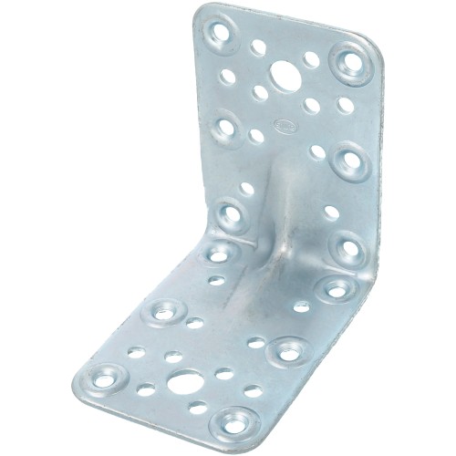 Ángulo reforzado perforado en acero. Fijación de estructuras de madera. Disponibles en varias medidas y acabados.