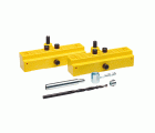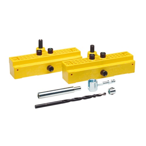 Juego de plantillas para colocación de pernios modelo 20 y 50 en hojas solapadas. Compuesto por: 2 plantillas, 1 broca, 1 tope para broca, 1 tornillo regulador para hembras y 1 gancho.