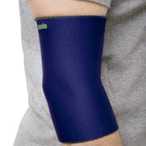 Codera de neopreno termosellada. Sin costuras. Con efecto termoterapéutico de calor y compresión. Indicaciones: dolores de codo (reumáticos y de articulación). Bursitis, epicondilitis, tendinitis. Rehabilitaciones.