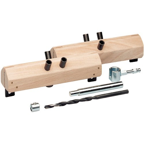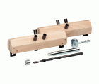 Juego de plantillas para colocación de pernios modelo 20 y 50 en hojas enrasadas. Compuesto por 2 plantillas, 1 broca, 1 tope para broca, 1 llave en T y 1 adaptador para la llave en T.