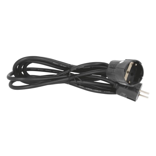 Prolongador Schuko con toma de tierra. Cable 3G 1,5 mm². Salida de cable recta. Amperaje máximo: 16 A. Voltaje máximo: 250 V.