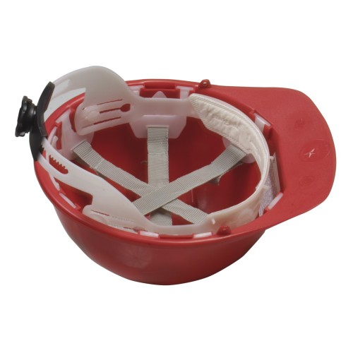 Casco ENPolietileno (PE) resistente a los rayos UVA, con cinta de sudo ración y ranuras para adaptar auriculares. Arnés de nylón y ajuste por ruleta con 8 puntos de anclaje. Norma EN397. Peso: 345 g. Aislamiento eléctrico: 440 V AC. Para obra.