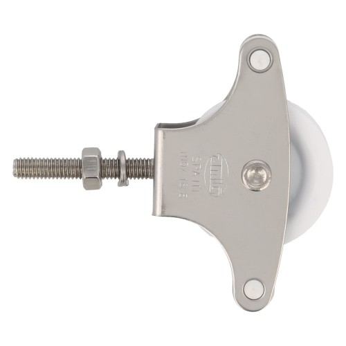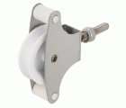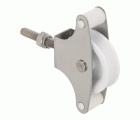 Polea de acero inoxidable 18/8 con roldana de plástico de Ø 39 mm. Con tornillo de sujeción y guías. Para tendederos de ropa.