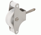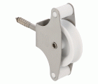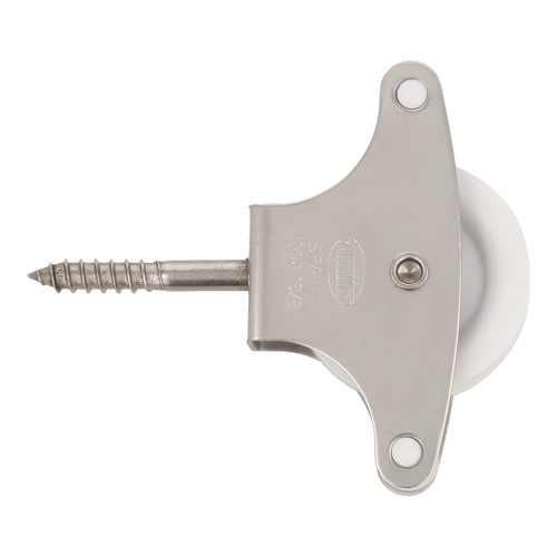 Polea de acero inoxidable 18/8 con roldana de plástico de Ø 39 mm. Con tirafondo de sujeción y guías. Para tendederos de ropa.