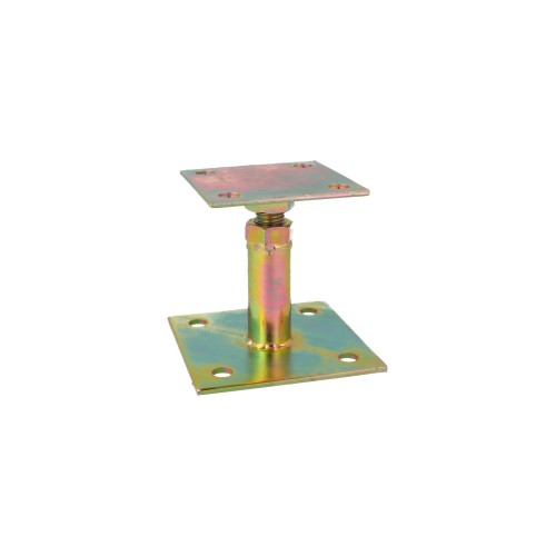 Soporte de fijación fabricado en acero de alta calidad que garantizan durabilidad y alta capacidad de carga. Consta de un tubo cilíndrico con un sistema de ajuste mediante tuerca y tornillo, lo que permite regular la altura del soporte de 110 a 155 mm. Recubierto con un acabado bicromatado, lo que proporciona protección contra la corrosión y el desgaste por exposición a la intemperie.
