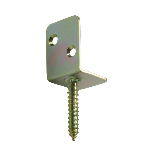Anclaje con tornillo soldado fabricado en acero en acabado bicromatado para mayor resistencia a la corrosión. Forma en "L" con orificios para fijación adicional con tirafondos.