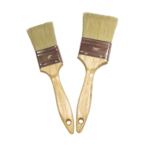 Mezcla de PVC y cerda pura extralarga. Mango de madera barnizada. Para uso general.