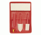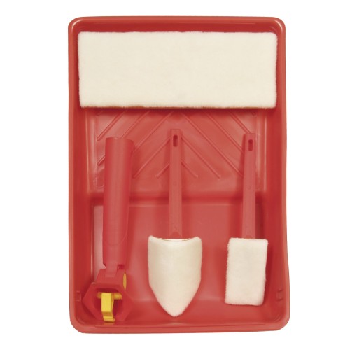 1 aplicador grande. 1 aplicador pequeño. 1 rinconera. 1 cubeta. Para trabajos de pintura interiores.