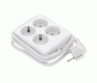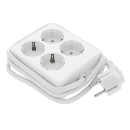 Base múltiple Schuko cuadrada con toma de tierra. Cable 3G 1 mm² de 1,5 m de longitud. Amperaje máximo: 10/16 A. Voltaje máximo: 250 V. Potencia máxima: 3500 W.