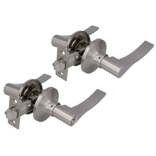 Juego de manillas con picaporte de entrada 60/70 mm incluido. Picaporte de canto cuadrado con sistema antitarjeta. Función Hotel, con llave exterior: el sistema se libera solo con la llave, pero por el interior siempre está libre. Para puertas de madera de anchura de 35 a 45 mm.