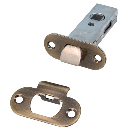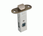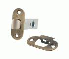 Picaporte de embutir de entrada 45 mm con frente redondo y soporte con cantos redondeados. Para manillas con cuadradillo de 8 mm en puertas de madera de paso.