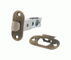 Picaporte de embutir. Frente redondo y soporte con cantos redondeados con film protector. Para pomos y manillas de roseta con tornillos pasantes con cuadradillo de 8 mm en puertas de madera de paso.