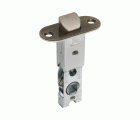 Picaporte de embutir con frente y soporte en canto redondo.Para pomos o manillas de roseta con tornillos pasantes con cuadradillo de 8 mm en puertas de madera de paso.