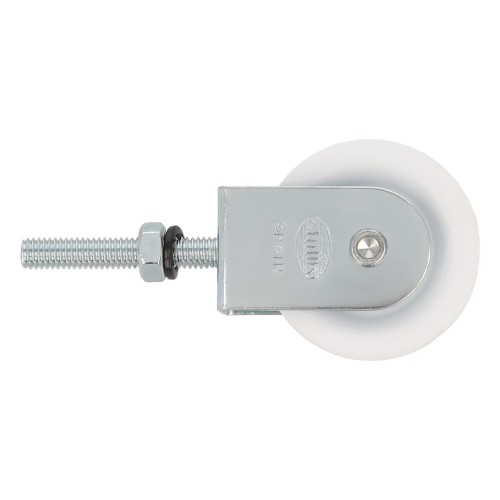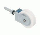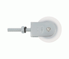 Polea de acero con roldana de plástico de Ø 37,5 mm. Con tornillo de sujeción y sin guías. Para tendederos de ropa.