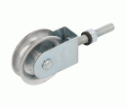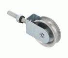 Polea de acero con roldana metálica de Ø 37,5 mm. Con tornillo de sujeción y sin guías. Para tendederos de ropa.
