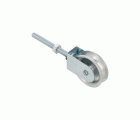 Polea de acero con roldana metálica de Ø 37,5 mm. Con tornillo de sujeción y sin guías. Para tendederos de ropa.