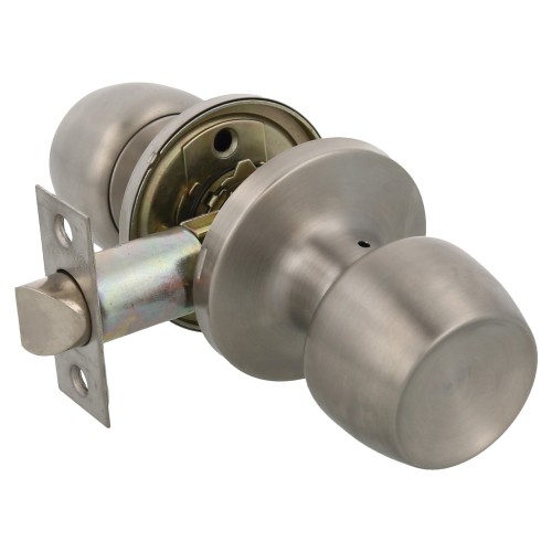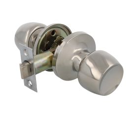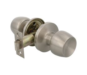 Juego de pomos tipo copa invertida con picaporte de entrada 60/70 mmincluido. Picaporte de canto cuadrado. Para puertas de madera de anchurade 35 a 45 mm.
