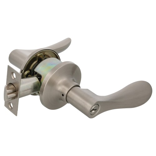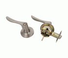 Juego de manillas con picaporte de entrada 60/70 mm incluido. Picaporte de canto cuadrado con sistema antitarjeta. Función Entrada, con llave exterior y condena interior: el sistema queda liberado cuando se desbloquea por medio de la llave o de la condena y se bloquea de la misma manera. Llave en bruto modelo 5100. Para puertas de madera de anchura de 35 a 45 mm.
