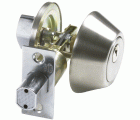 Cerrojo de roseta con llave exterior y condena interior. Pasador de seguridad antisierra con avance de 25 mm. Roseta de latón de Ø 65 mm. Entrada del cerrojo: 60 y 70 mm. Espesor de puerta máximo: 45 mm. Llave en bruto modelo 5100.
