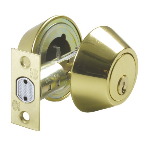 Cerrojo de roseta con llave por ambos lados. Pasador de seguridad antisierra con avance de 25 mm. Roseta de latón de Ø 65 mm. Entrada del cerrojo: 60 y 70 mm. Espesor de puerta máximo: 45 mm. Llave en bruto modelo 5100.
