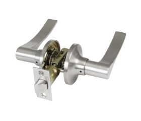 Juego de manillas con picaporte de entrada 60/70 mm incluido. Picaporte de canto cuadrado. Función Paso: la manilla se acciona libremente desde ambos lados. Para puertas de madera de anchura de 35 a 45 mm.