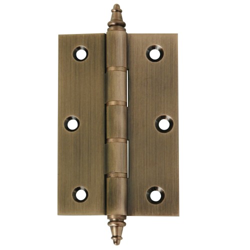 Bisagra fija de perfil laminado de latón en canto cuadrado con arandelas y remates. Fácil instalación.