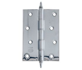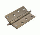 Bisagra fija. Perfil laminado de latón. Canto cuadrado, con remate. Pasador de latón y con arandelas.