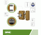 Medidas: 96 x 66 mm. Longitud del cilindro: 50 mm. Incluye 5 llaves de punto (modelo 5000 AMIG) y tornillos para su colocación. Material: acero, empleado por su larga vida útil y por ser muy resistente al frotamiento, al óxido y la corrosión.