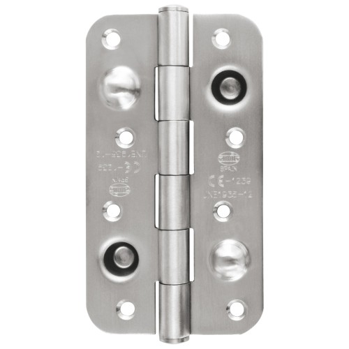 Bisagra de seguridad con marcado CE y canto redondo de 15 mm de radio para puertas de entrada. Fácil instalación.