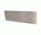 Placa rectangular de acero inoxidable 18/8. Espesor: 1,8 mm. Incluye accesorios de fijación.