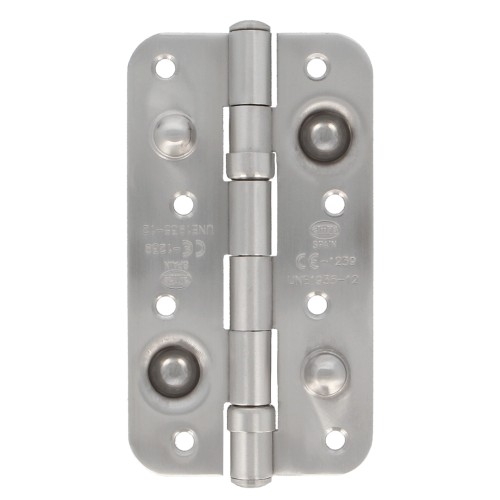 Bisagra de seguridad para puertas de entrada. 2 rodamientos. Canto redondo, sin remate. Con marcado CE para puertas cortafuego.
