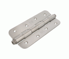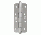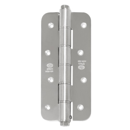 Bisagra de simple acción con canto redondo. Muelle de acero elástico flexible para cierre automático de puertas. Regulación de potencia de cierre, incluye llave Allen. Gran resistencia a la torsión.
